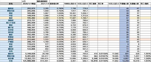 都筑区のコロナウィルス陽性者数(2021.07.09)http://princeyokoham.sakura.ne.jp/smf/index.php?topic=42939.0 2021.07.09時点の陽性者数をまとめてみました。 都筑区は22人(1日3.1人で東京換算すると206人)増えて1,322人、横浜市は691人(1日98.7人東京…