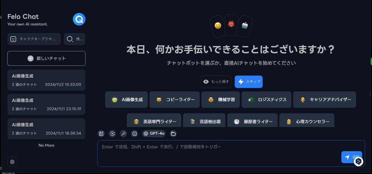 Feloは、OpenAI社の「GPT-4o」やAnthropic社の「Claude 3.5」などの最新の大規模言語モデル(LLM)を採用しています。これにより、言語間のやり取りや情報収集が効率化され、ユーザーは必要な情報を迅速に得ることができます。(有料版)無料版は何を使っているかは不明です。